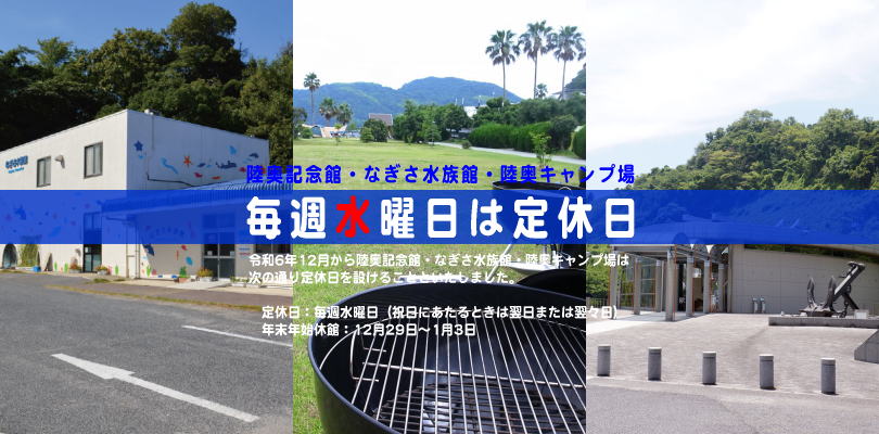 令和6年12月から陸奥記念館・なぎさ水族館・陸奥キャンプ場の3施設は次の通り定休日を設けることといたしました。