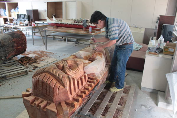 この周防大島のTIKIは島内有志が彫り上げたものであり、それぞれのTIKIには遊び心いっぱいのモチーフが彫り込まれています。