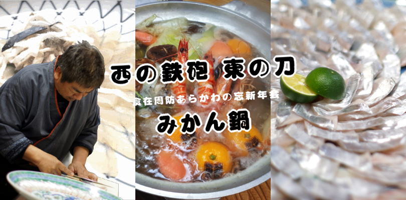 山口県が誇る虎河豚の刺身「てっさ」をはじめ、周防大島名物の「太刀魚の鏡盛り」や「みかん鍋」が旬を迎えた今日この頃、食在周防あらかわでは旬を食べ尽くす豪華忘年会のご用命を承っております。