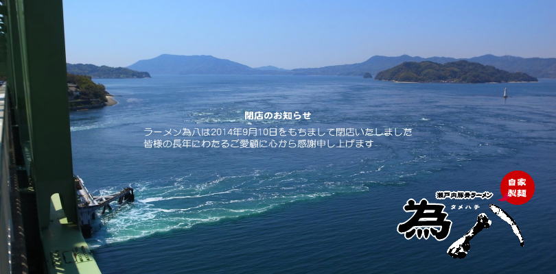 大島大橋のたもとにお店を構えるラーメン為八では、大畠瀬戸の絶景と共に為八ならではの瀬戸内豚骨ラーメンをご満喫いただけます。
